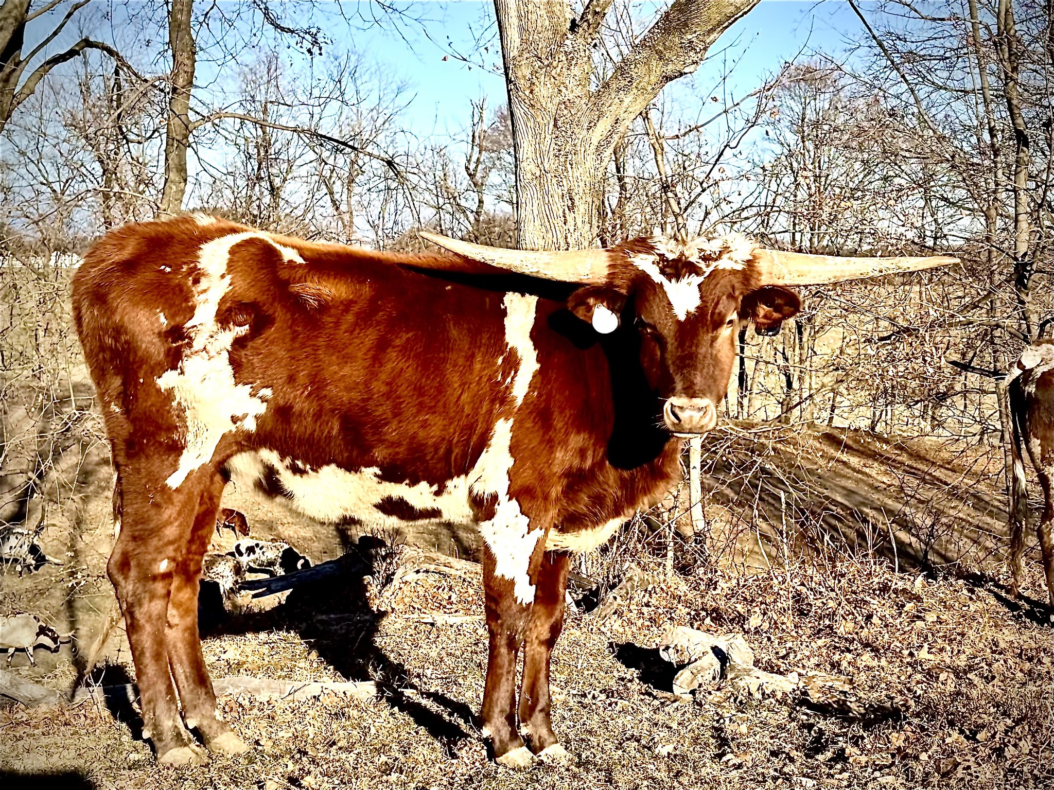 Stunning color and size. FJ is a big flashy heifer with all the horn genetics you could hope for. Her dam was over 86" TTT at her untimely passing. Her sire, Fifty-Fifty BCB, is sire to the most 100" females in breed history at this time. This girl has a very exciting future!